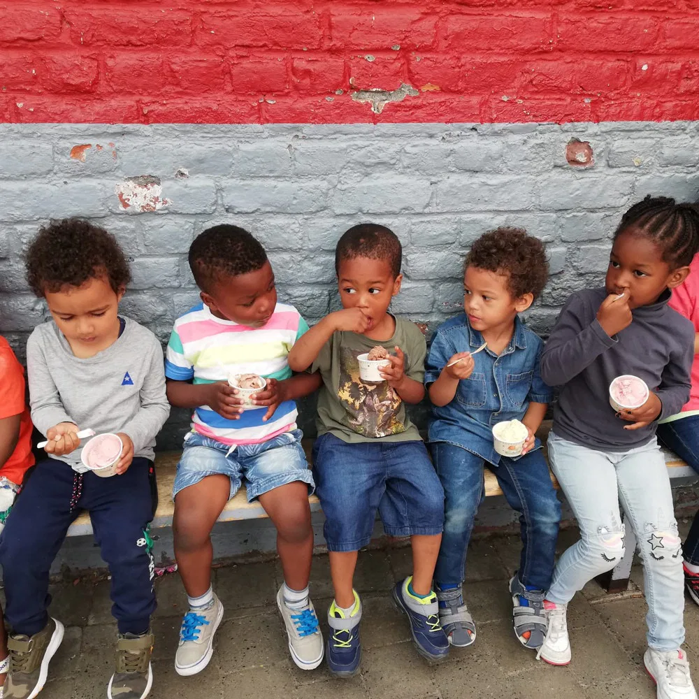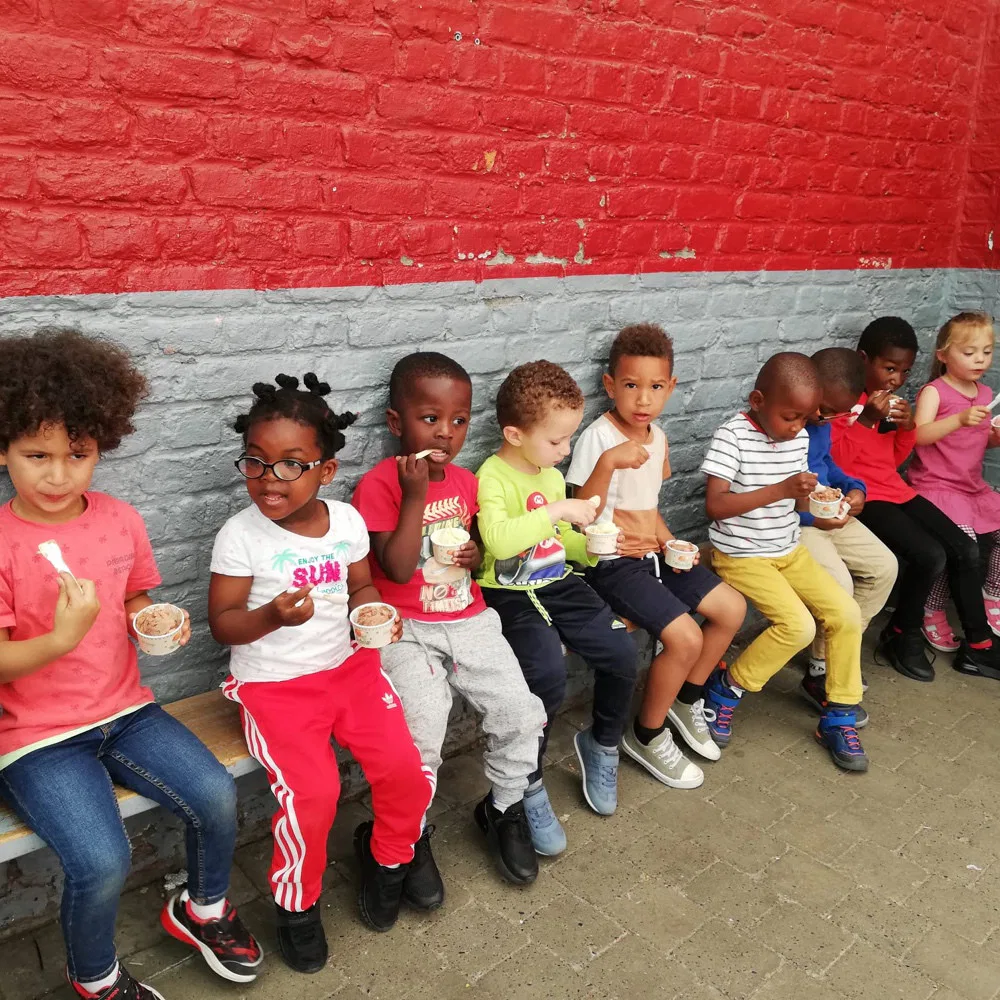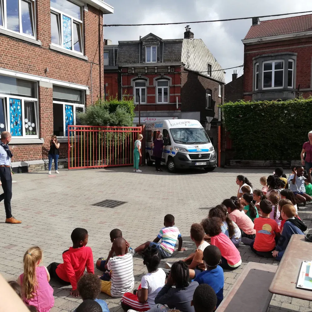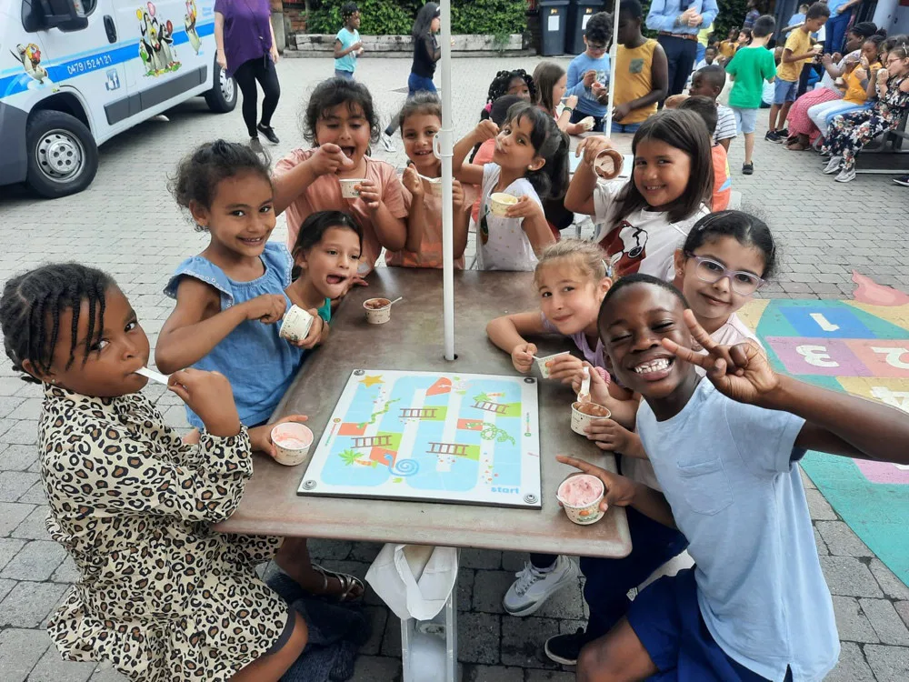 Après quelques minutes de patience, la musique du marchand de glace retentit dans la rue et sa camionnette s’arrête juste devant les grilles de notre école.