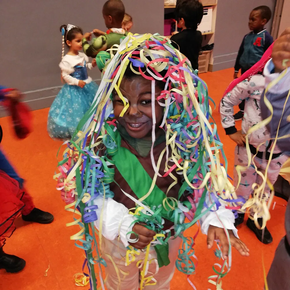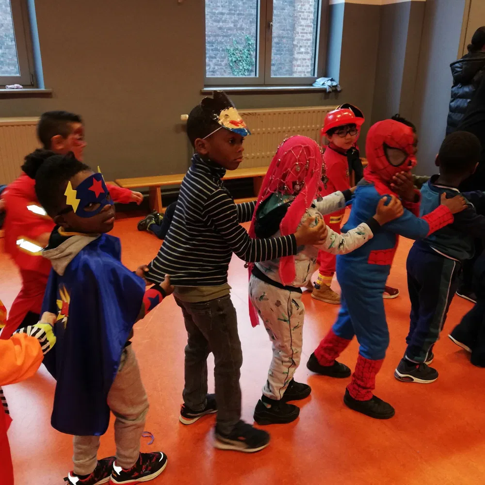 Le 25 février, veille du congé, les élèves ont pu venir à l’école en déguisement de carnaval. Nous avons chanté, nous avons dansé, nous avons lancé des serpentins !