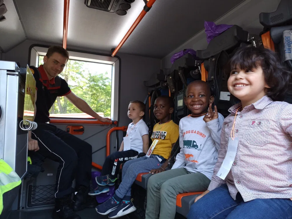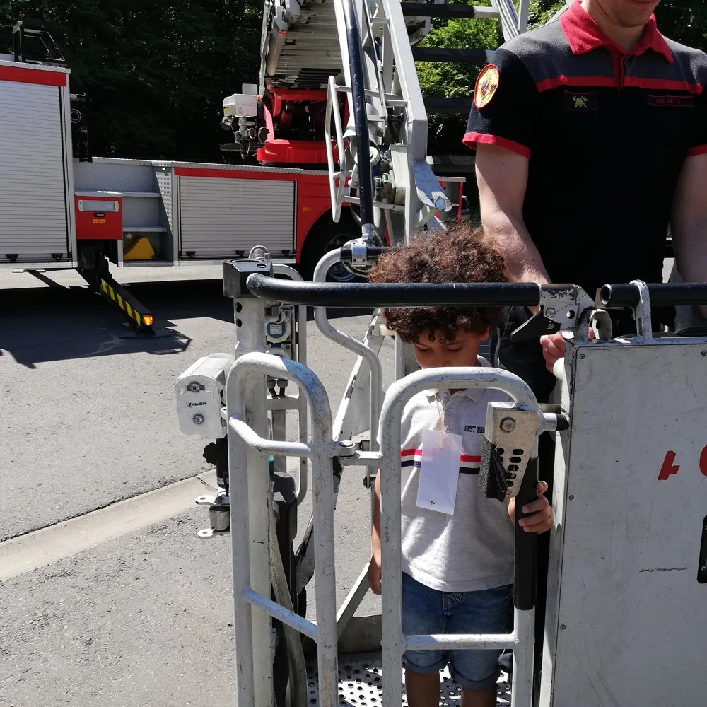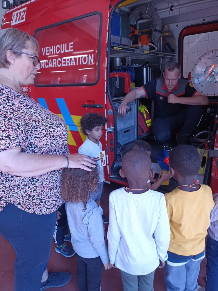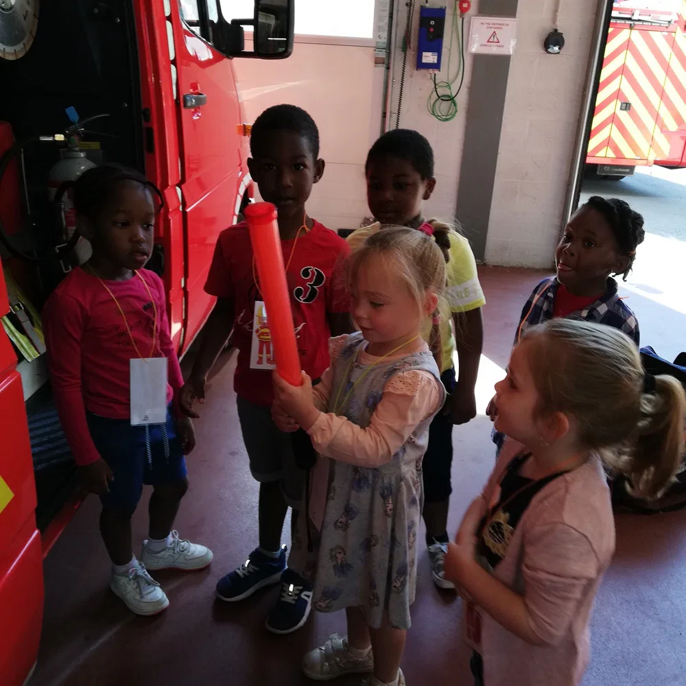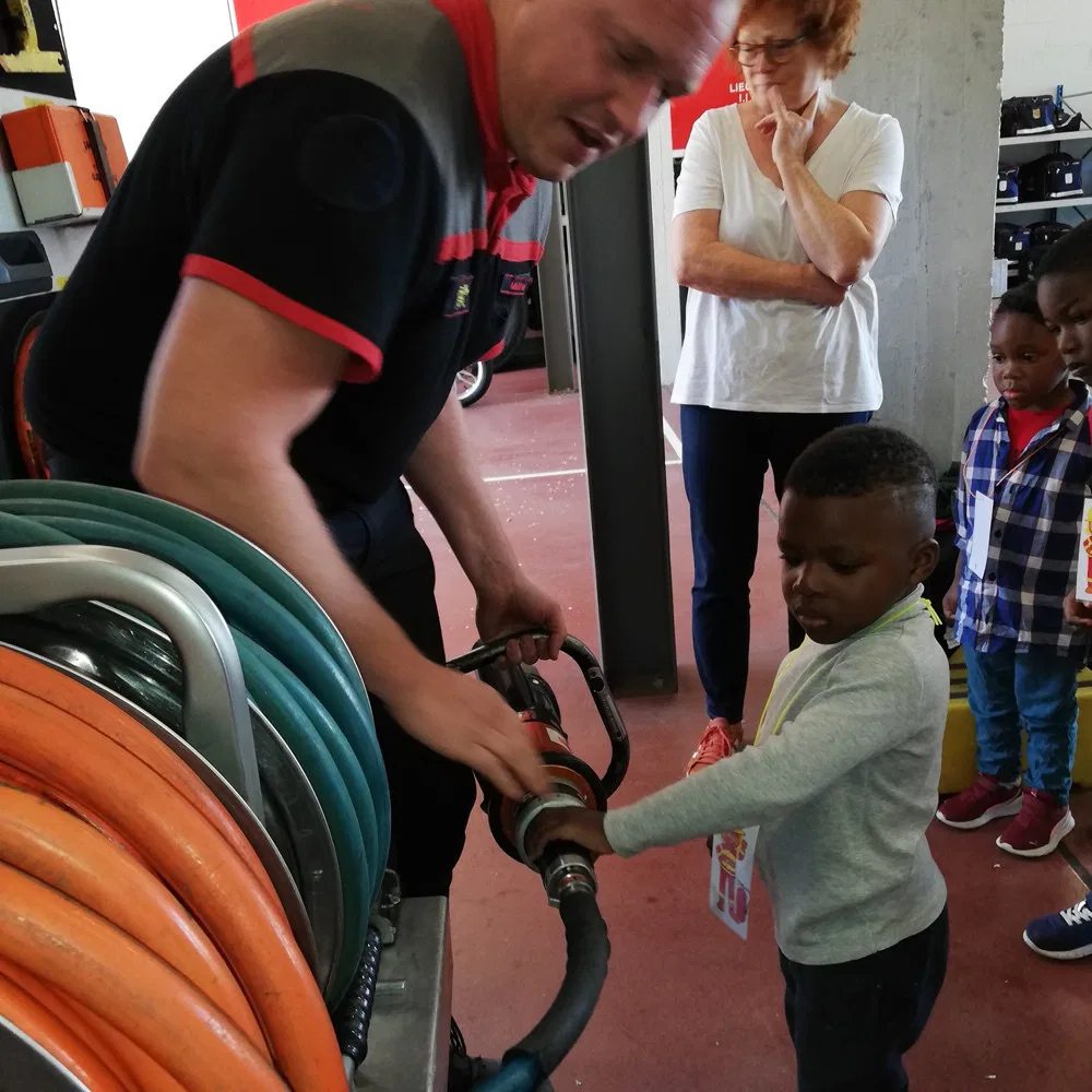 Jeudi 2 mai, les 1 ères maternelles ont rendu visite aux pompiers de la caserne d’Ans. Les apprentis pompiers ont découvert le maniement de la lance à incendie, les outils indispensables à la désincarcération de véhicules, se sont « envolés » dans la nacelle pour finir leur périple dans le camion de pompiers, sirène hurlante !
