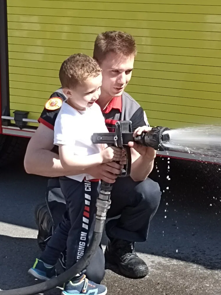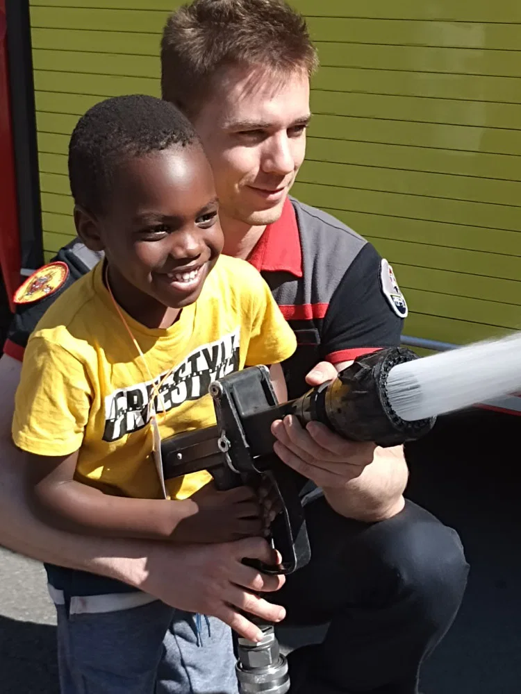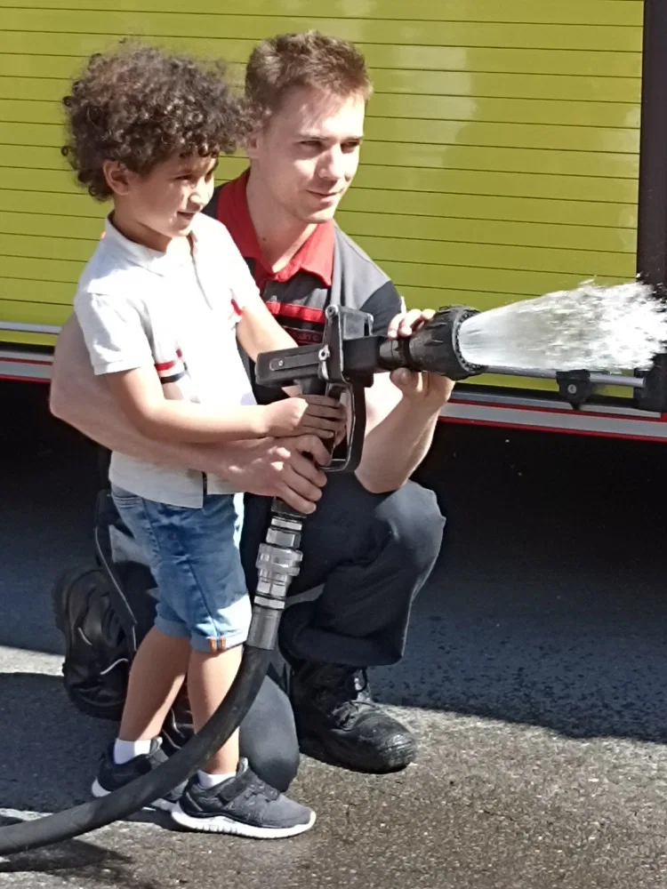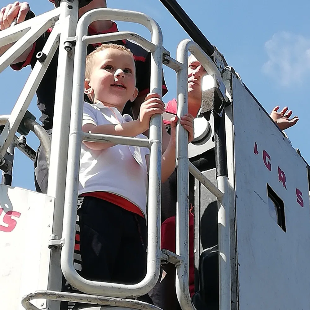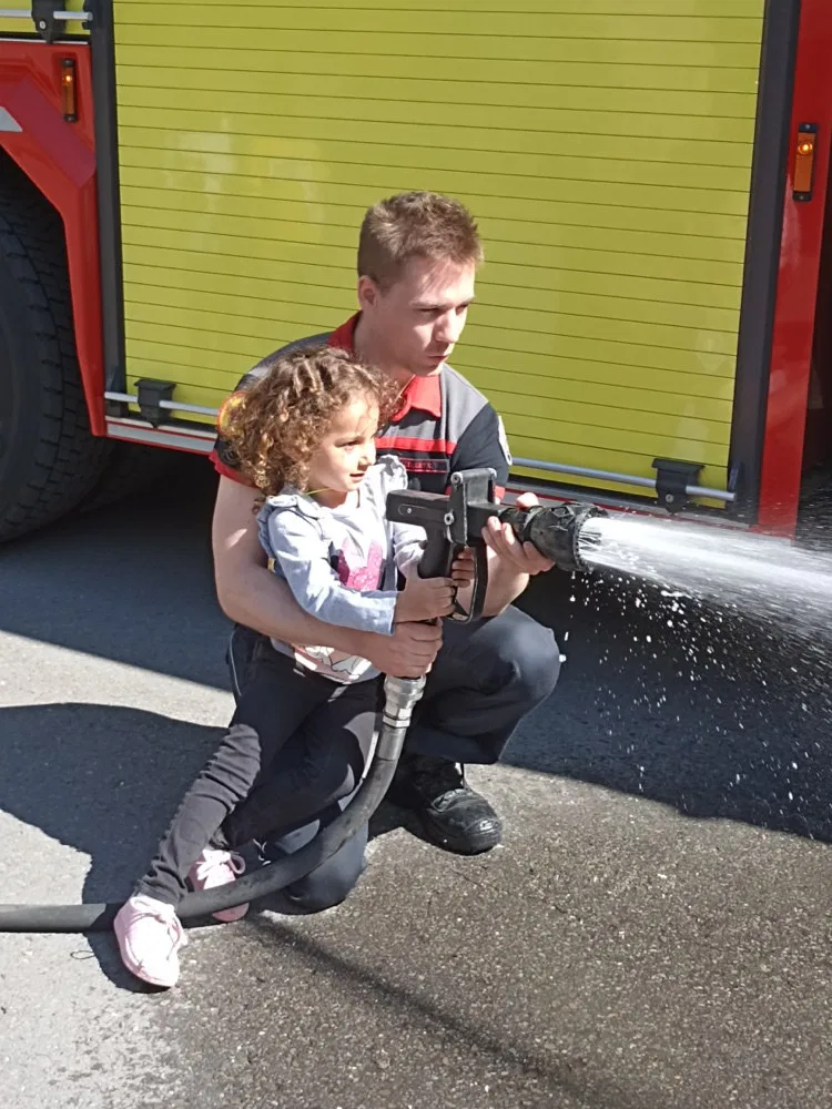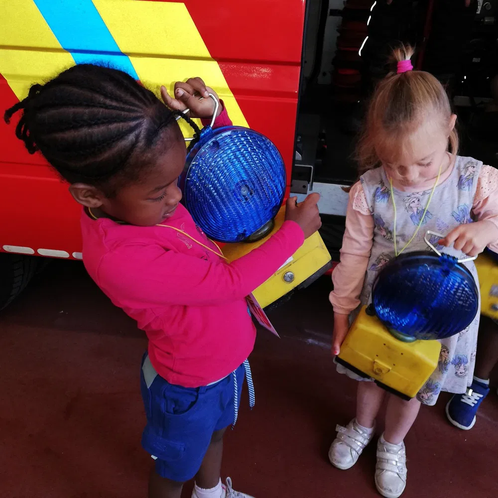Jeudi 2 mai, les 1 ères maternelles ont rendu visite aux pompiers de la caserne d’Ans. Les apprentis pompiers ont découvert le maniement de la lance à incendie, les outils indispensables à la désincarcération de véhicules, se sont « envolés » dans la nacelle pour finir leur périple dans le camion de pompiers, sirène hurlante !